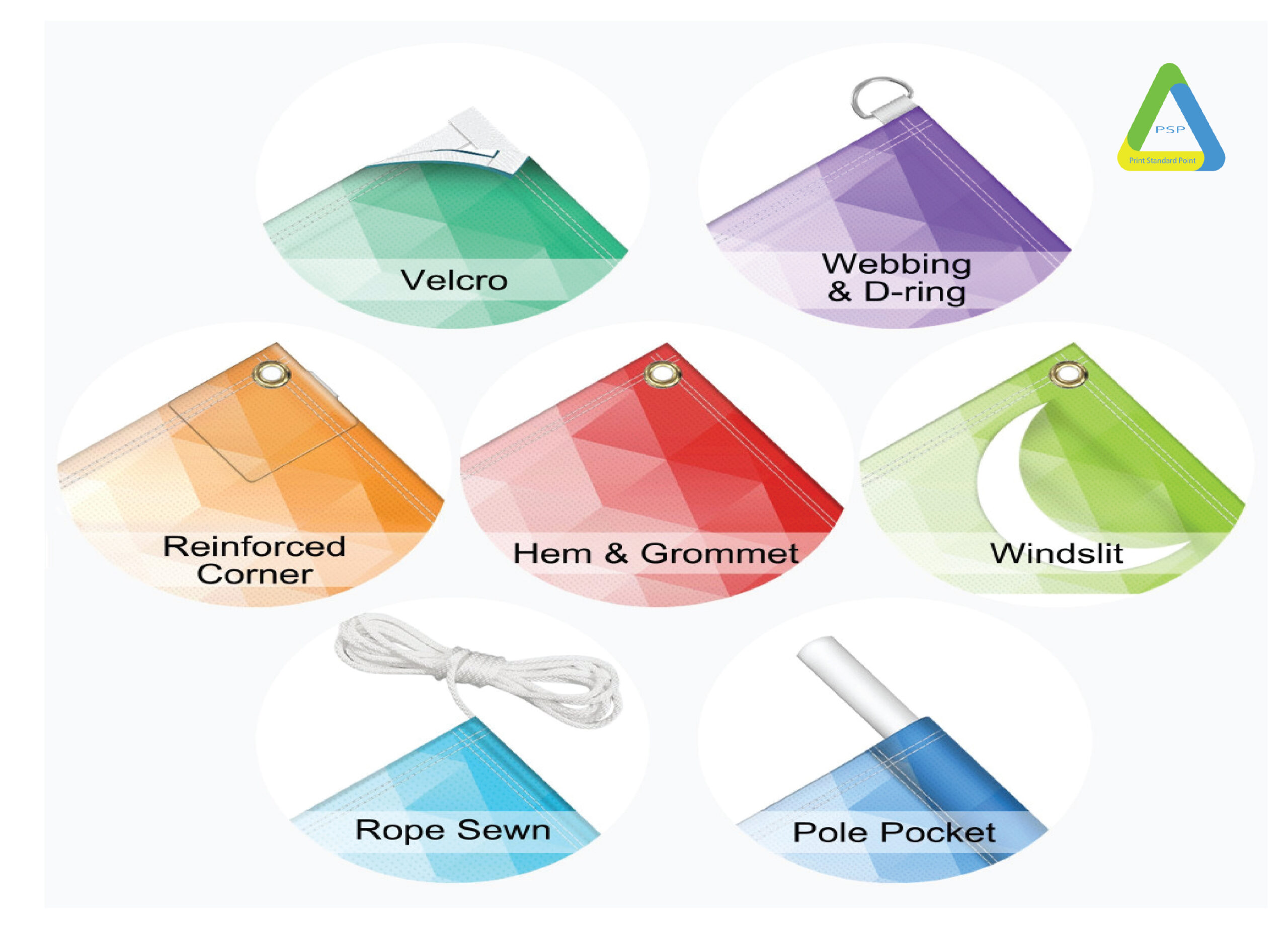 | Optional Finishing | Pole Pockets, Velcro, Webbing & D-Rings, Sewn-in Rope, Windslits, Reinforced Corners, Welded Oversized Banners |
