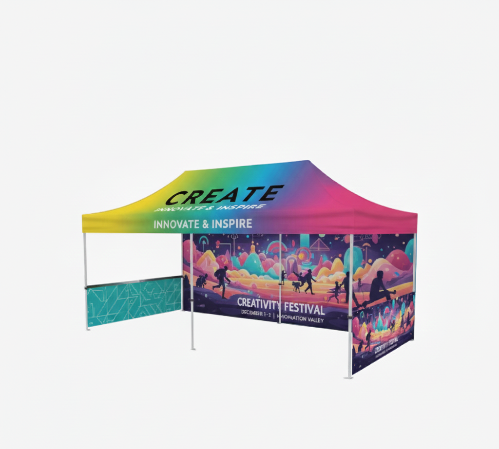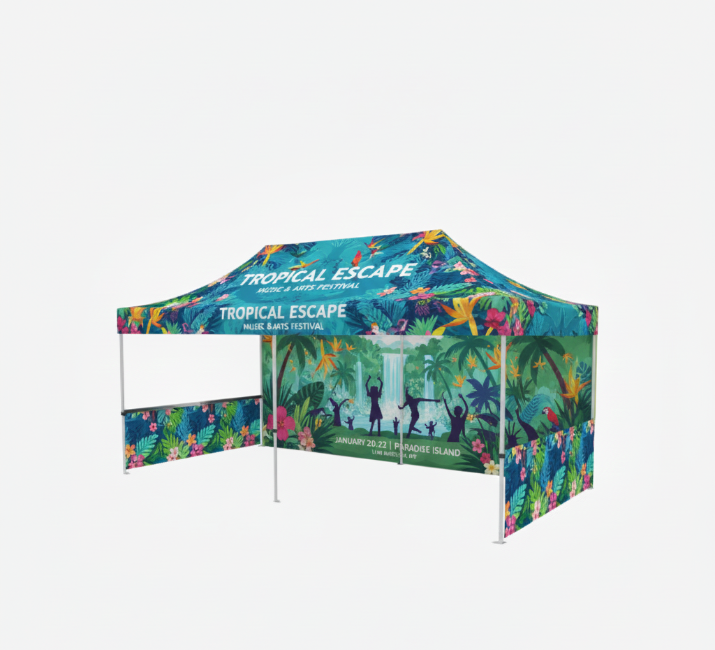 Enhance your booth’s visibility with optional full or half printed walls and custom flags, and protect your investment with scratch-resistant, waterproof printing that keeps graphics vibrant through repeated use. Lightweight yet sturdy, the tent is easy to transport using the included standard carrying bag, with a premium wheeled bag available for added convenience. Reinforced seams and durable stitching extend the lifespan of your 20ft event tent, combining practicality with a professional, high-impact presentation.