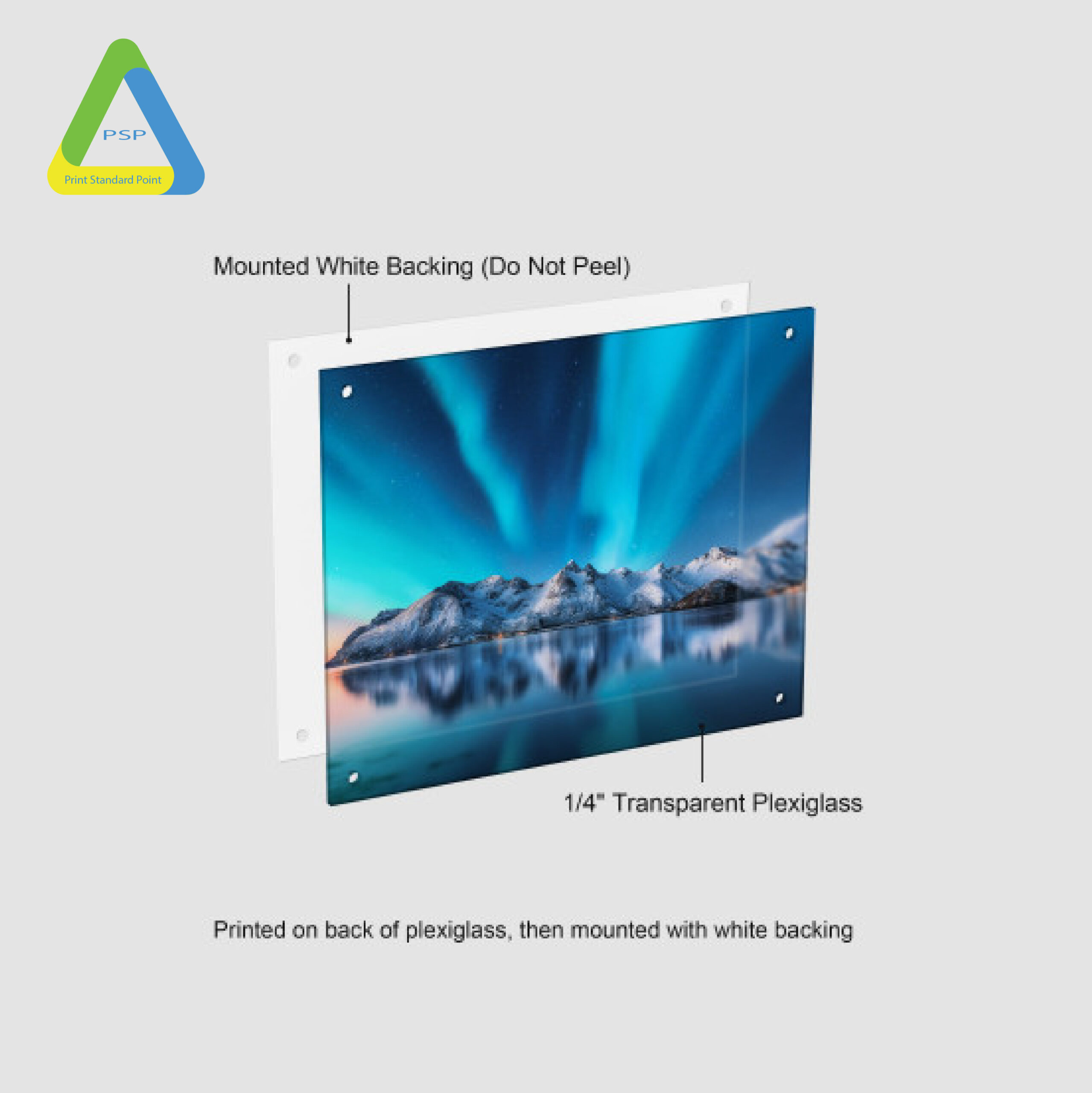 Acrylic Prints by Print Standard Point offer a sleek, modern way to showcase your favorite artwork, photos, or branding with exceptional clarity and depth. Each print is produced on 1/4″ clear plexiglass, using CMYK direct printing combined with a full white ink backing to ensure vibrant, true-to-life colors that pop from any wall. Available in 16×24, 20×30, and 24×36 sizes, these acrylic prints come precut with pre-drilled holes and include 1″ chrome-finished standoff hardware for easy wall mounting and a professional floating appearance. Crafted with precision, they’re perfect for both office displays and home décor, giving your space a polished, gallery-quality feel. Orders placed before 4 PM PST ship the next business day, while same-day turnaround is available for orders submitted before 12 PM PST. Each order is fulfilled from the nearest Print Standard Point production facility for faster delivery and lower shipping costs. With durable materials and a protective acrylic face, your artwork remains vibrant and long-lasting. Please note, the white backing is permanent and should not be removed. Print Standard Point proudly serves the trade print industry, offering exclusive, high-quality printing solutions for professional resellers.