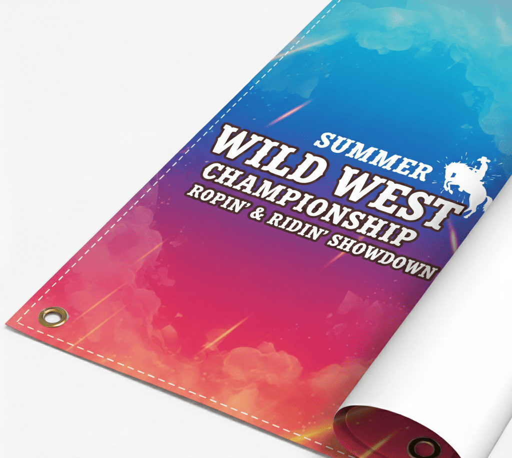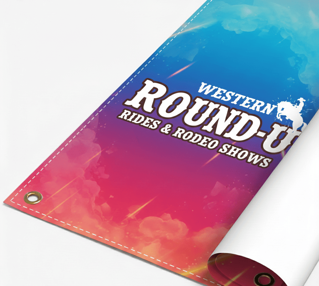 You can order custom banners in almost any size—up to 52″ x 100′—so it works well for trade shows, retail displays, corporate events, and more. Every banner is single-sided and can include grommets every 2 feet to make hanging easy. The edges are flush-cut for a modern, polished look, and the material is designed to stay flat without curling, even when viewed up close.