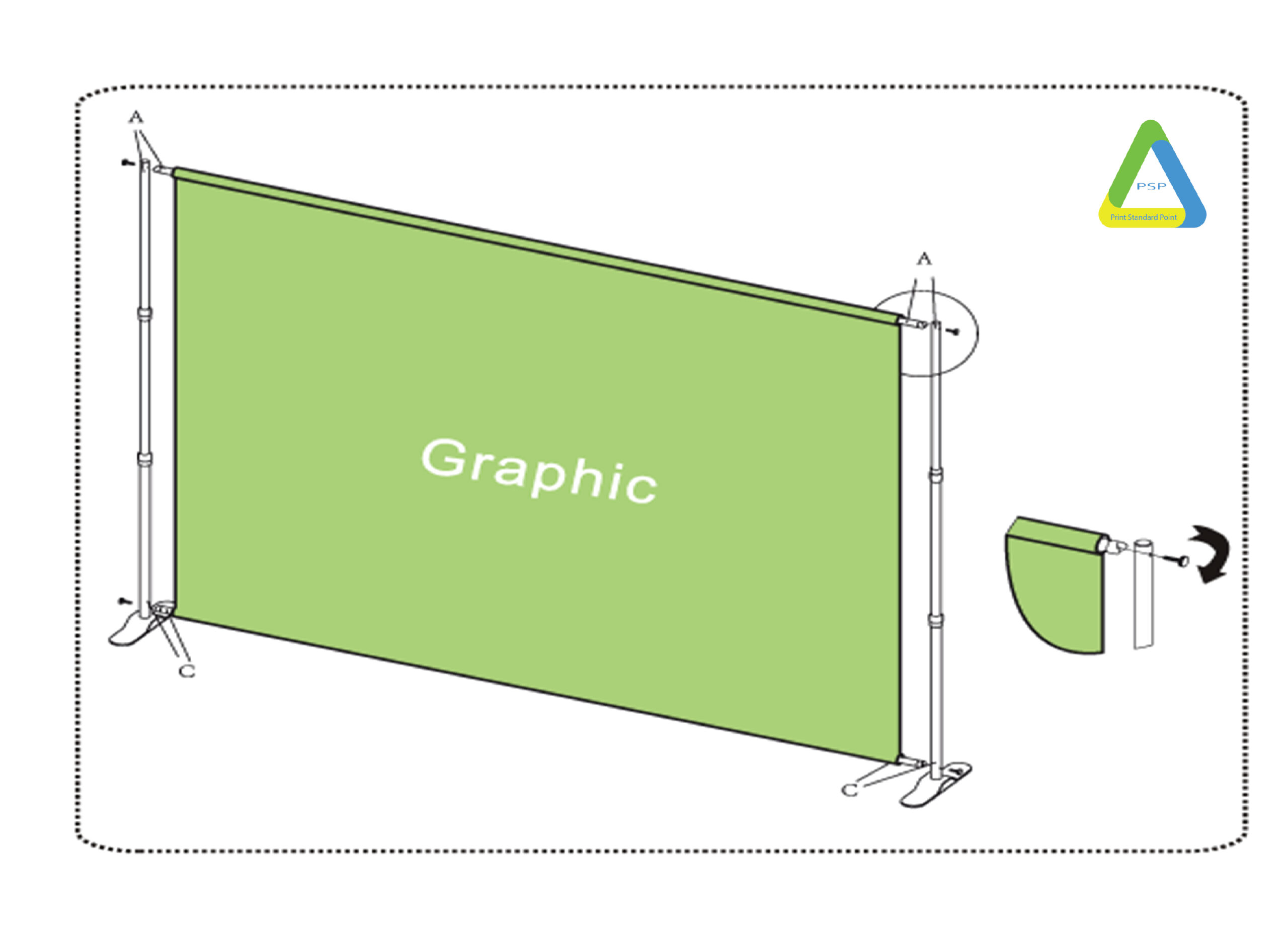 Step 3: Run poles #A-B and #C-D through the pole pockets on the top and bottom of the graphic.