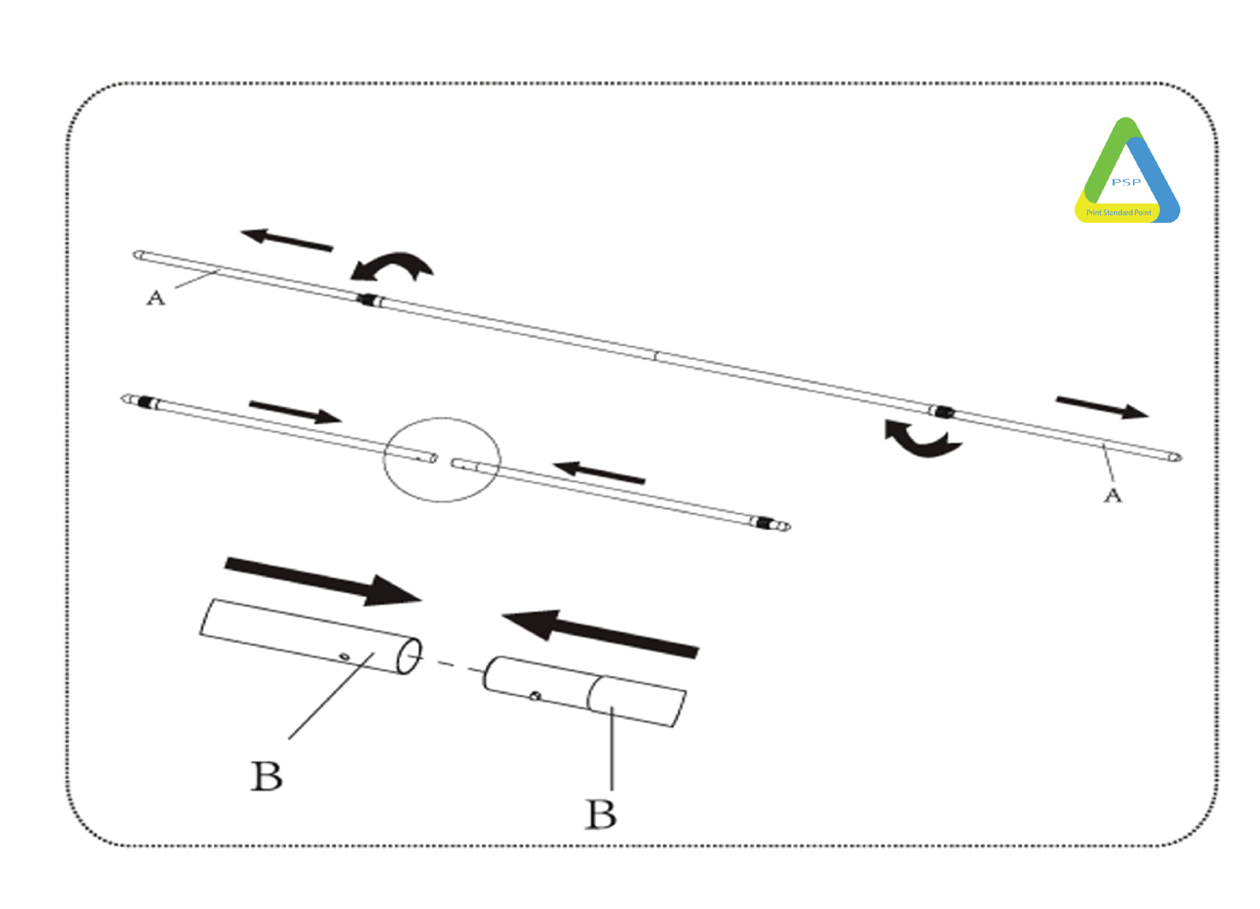Step 1: Connect the two poles labeled #A-B by joining the B-B ends. Repeat with bottom poles #C-D. Extend telescopic ends A.