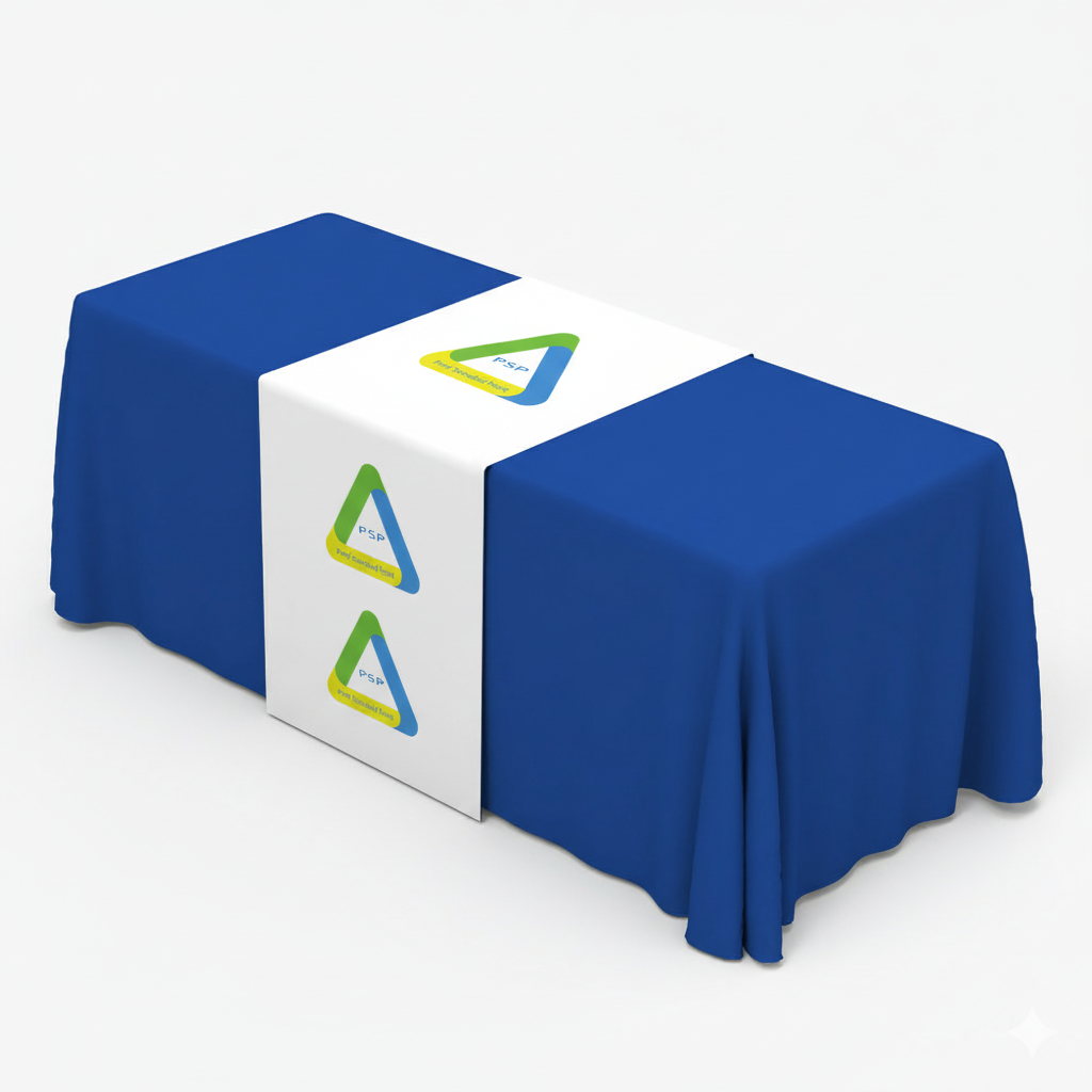A Table Runner offers a versatile and cost-effective way to add powerful branding to any existing setup or plain table. This highly adaptable product allows you to feature your logo or message directly across the center of a table for maximum visibility and brand recognition. The runner is produced with brilliant full-color dye-sub print, ensuring your branding is sharp, vibrant, and incredibly memorable on any surface. You have the option to purchase the Table Runner Only, which can be quickly paired with any pre-owned or stock-color cloth for an economical solution. For a complete and instantly polished look, select the convenient Table Runner + Solid Color Throw Combo. This combo provides a foundational color drape plus your custom-branded runner, making booth setup effortlessly professional.