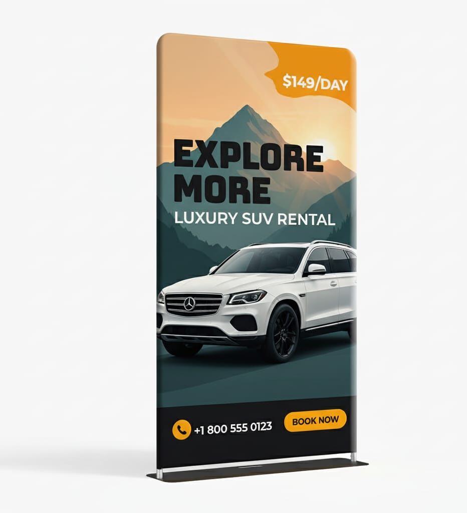 The stand’s visual impact comes from a custom, full-color graphic printed using the dye-sublimation process on stretch tension fabric. This “pillow-case” graphic simply slips over the assembled frame and zips closed at the bottom, creating a smooth, taut, and virtually wrinkle-free display surface.