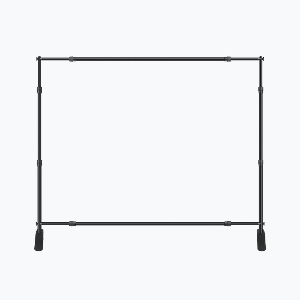 The Step and Repeat Backdrop hardware is an adjustable aluminum stand designed for professional photo and media backdrops. It accommodates step and repeat banners for red carpet events, press conferences, and promotional appearances. Adjustable height and width provide flexibility for different banner sizes. The lightweight yet sturdy frame allows for easy transport and setup. Assembly is quick and efficient without specialized tools. This product includes hardware only and does not include the printed banner.